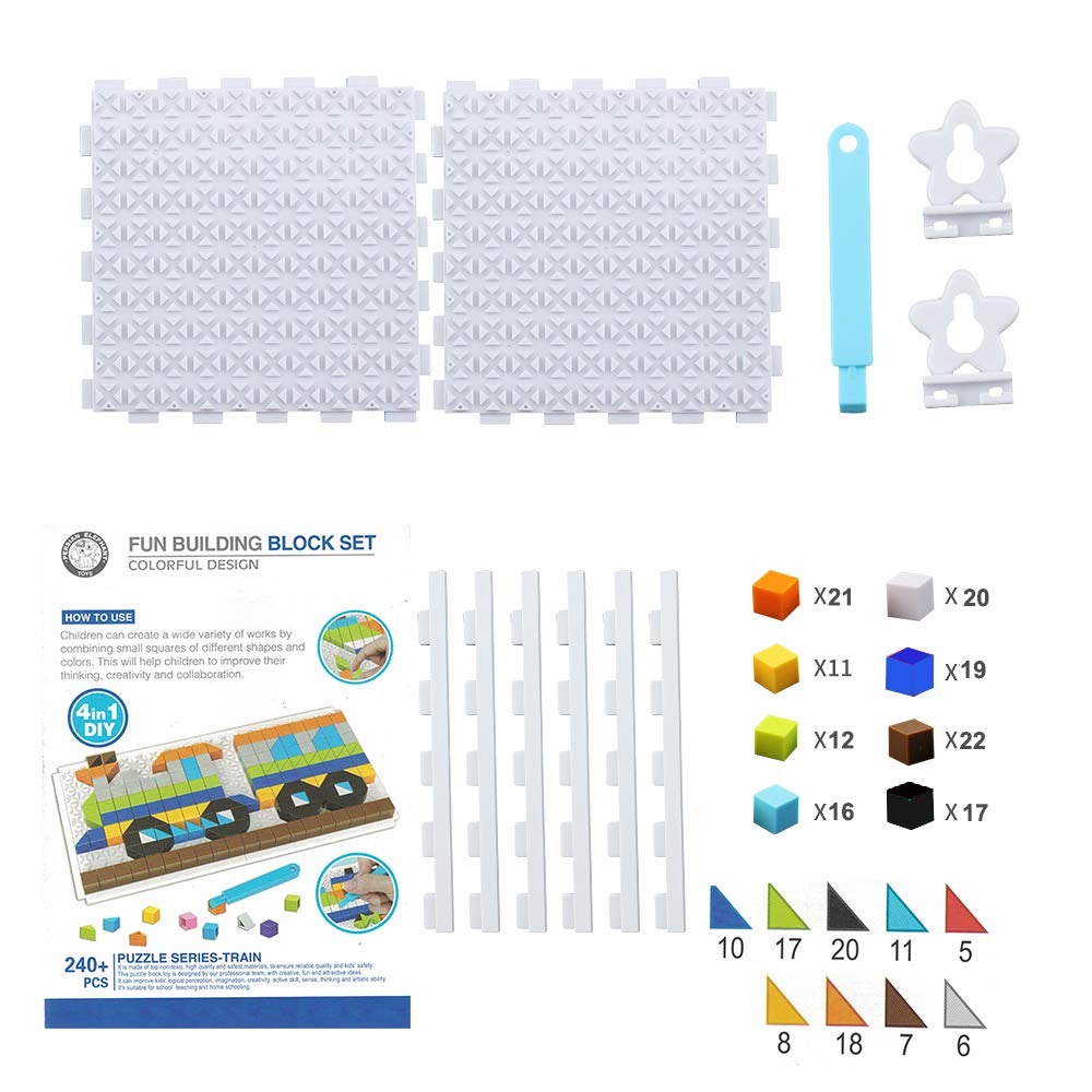 - Children can create a wide variety of works by combining small squares of different shapes and colors which helps in critical thinking, creativity and collaboration